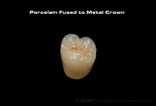 過去受到材料限制,常使用金屬做假牙內襯,外層再燒上一層陶瓷營造牙齒的自然色,但因金屬材質透光性低,容易看起來「假假的」,且金屬內襯經過一段時間後,金屬離子滲透出來,常會發生牙齦黯黑、灰色金屬色澤;此外,這類金屬內冠密合度較差,常發生假牙金屬邊緣露出等缺點,不僅造成美觀上很大的困擾,還有可能導致口腔藏污納垢、病菌入侵、產生異味、痠痛或二次蛀牙等多重問題。反觀全瓷牙冠,內冠不含金屬成份,光線穿透性完全不受內層金屬影響,外觀上與自然牙色相仿,加上沒有金屬異味、不腐蝕、不因冷熱食物的交替而刺激牙髓神經,為近年來牙醫界及病患接受度來愈高的假牙材質。